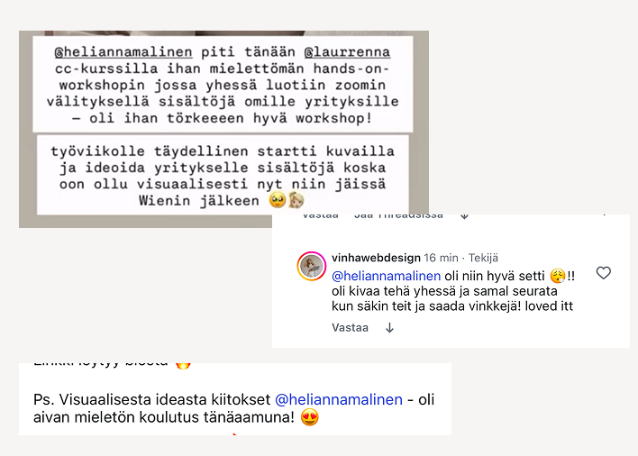 Me kuvataan yhdessä konkreettisesti video & karuselliin kuvat. Ohjaan, saat kysyä ja saat parhaat vinkit _tehdessä_!